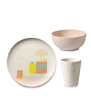 Tolles Kindergeschirr mit Glace-Motiv aus Bambus. Das Set beinhaltet einen flachen Teller, einen Becher und eine Schale.